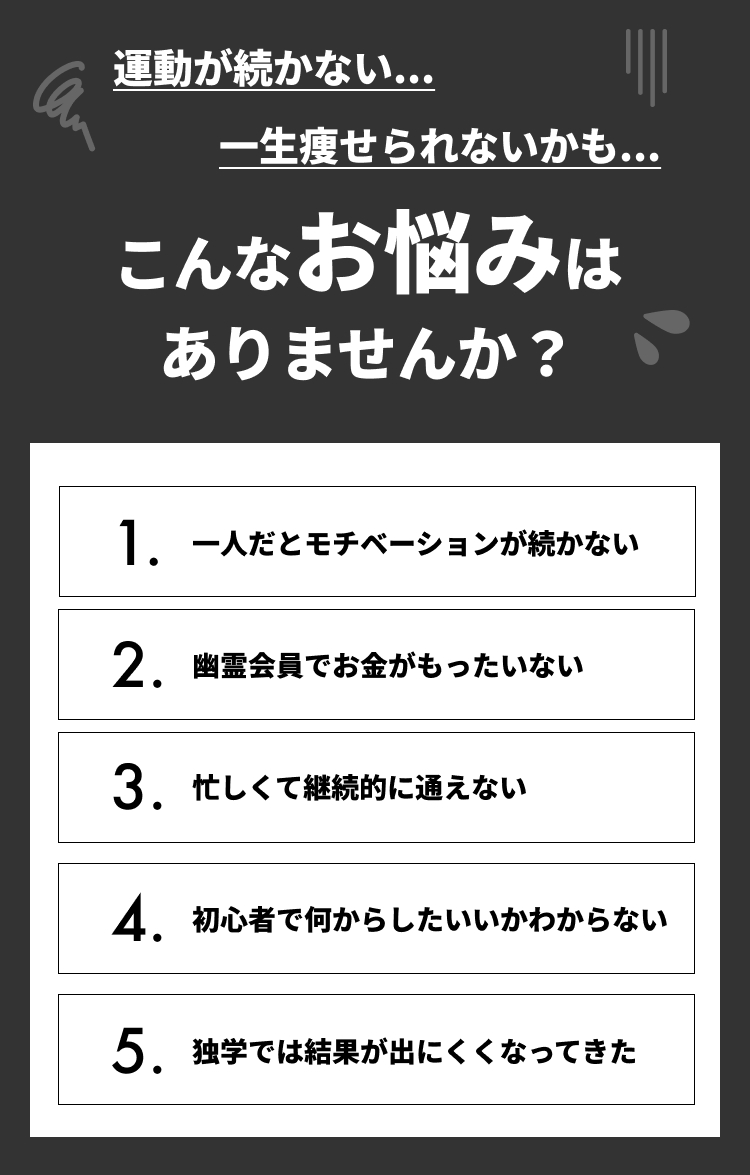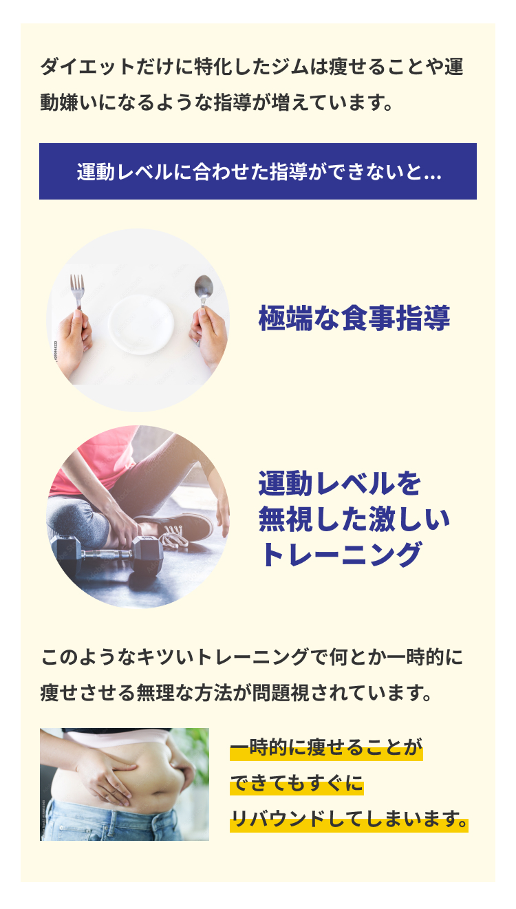高額の短期集中型パーソナルジムが多い中、長く続けられるパーソナルジムを目指しております!